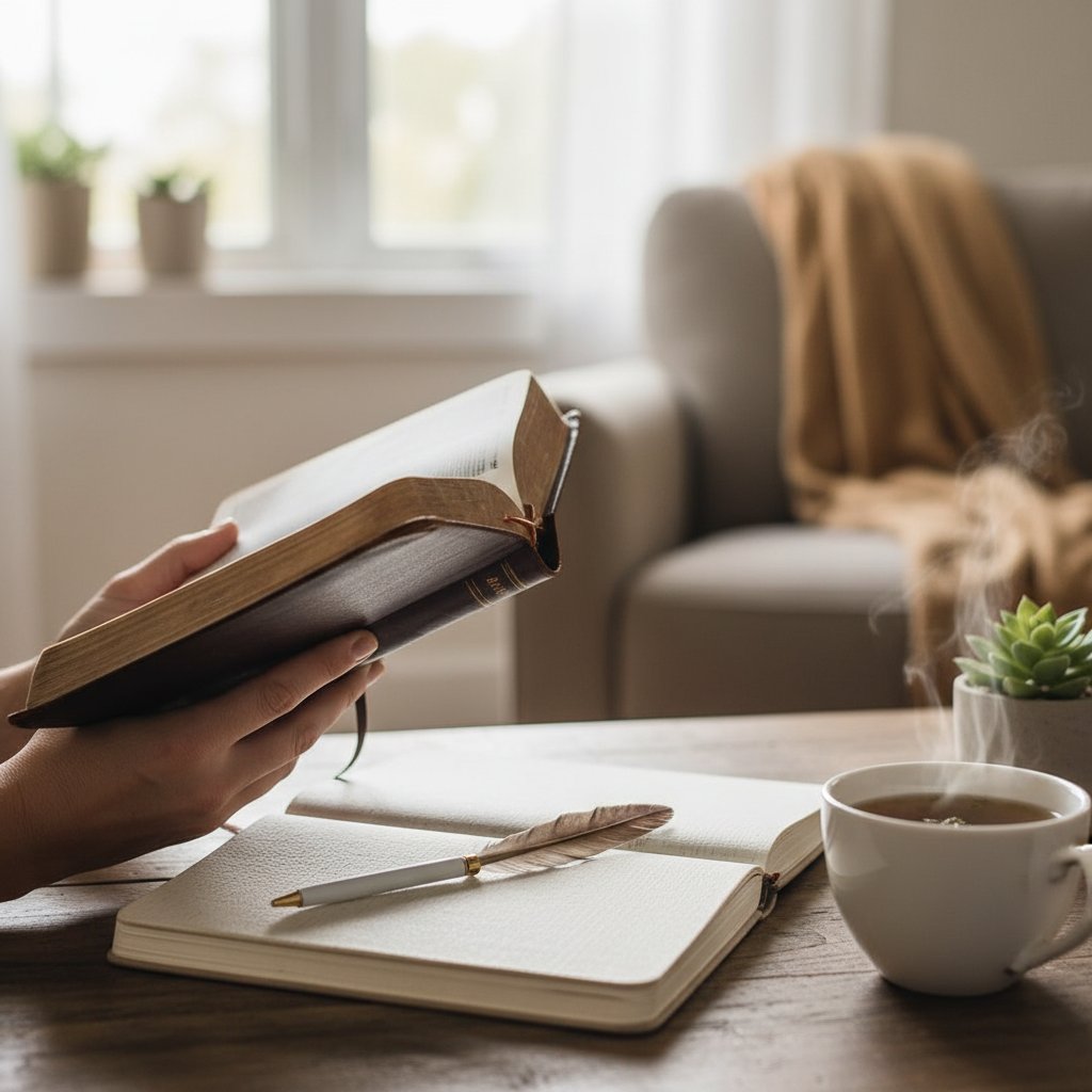 A: 짧은 시편이나 잠언 한 구절부터 시작하거나, 위로가 되는 찬양을 들으며 마음을 진정시킨 후 말씀을 펼치는 것을 추천합니다.